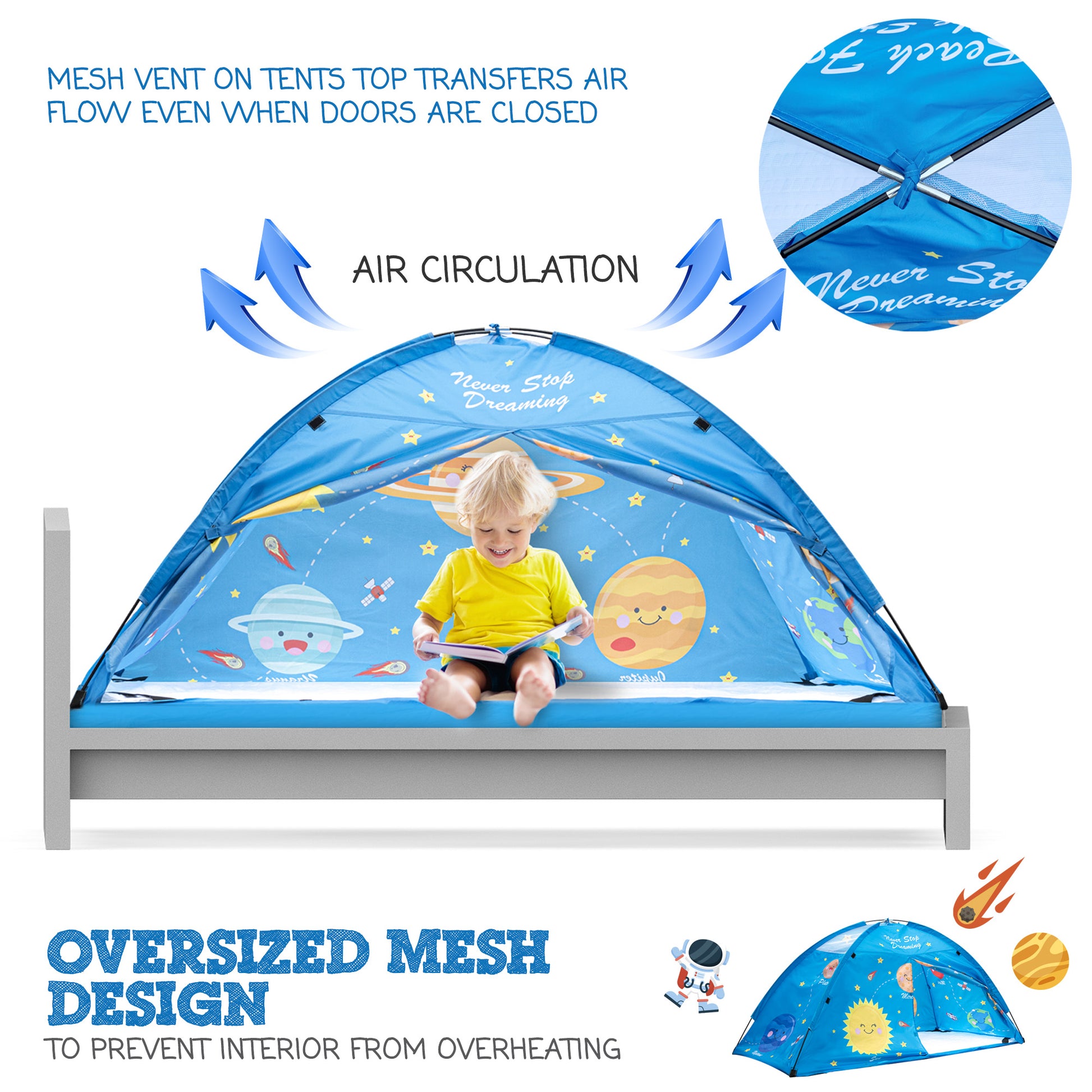 Outer Space Twin Size Bed Tent for Kids Indoor Fort - Magical Pop Up Dream Tent for Mattress